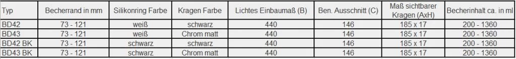 BD46-47 – BECHERSPENDER – EINBAU – 200-710 ML (Kurz)